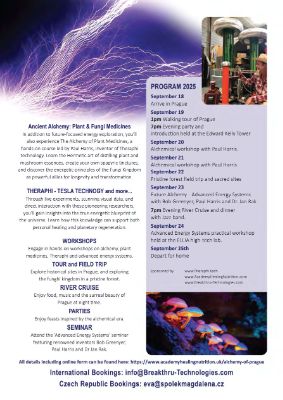 We are thrilled to unveil the Advanced Energy Systems section of this year’s Alchemy of Prague—a cutting-edge symposium where ancient alchemy meets breakthrough physics.